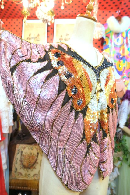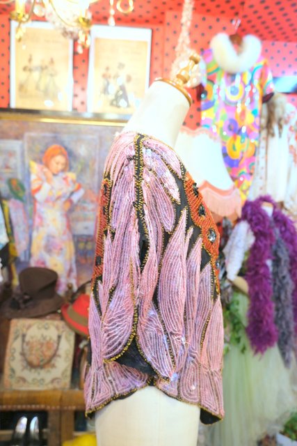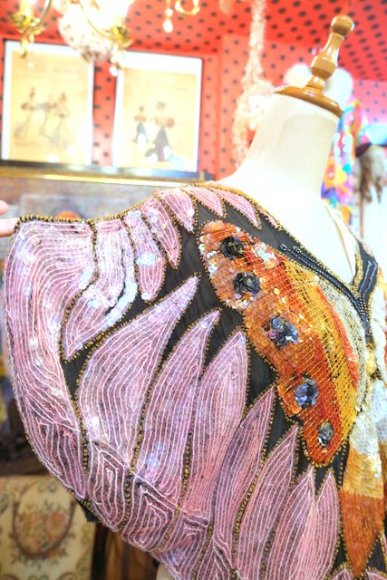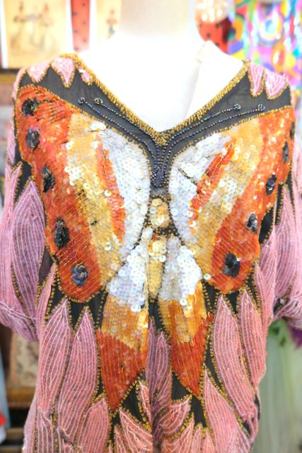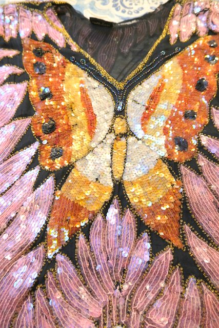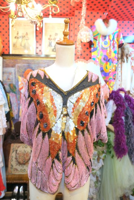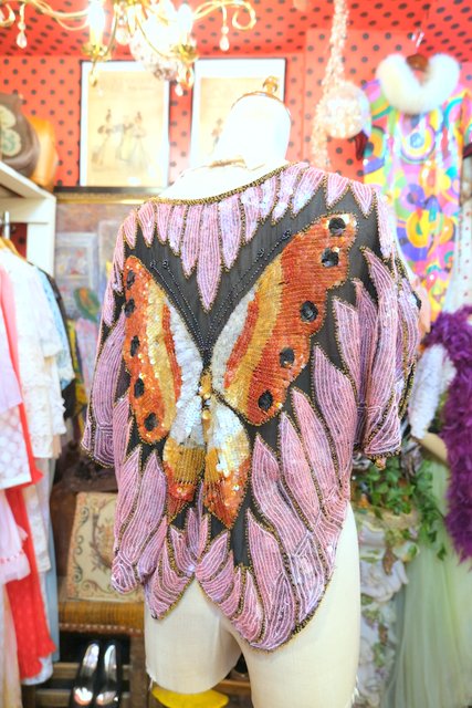 ヨーロッパ古着80sヴィンテージ蝶スパンコールトップス