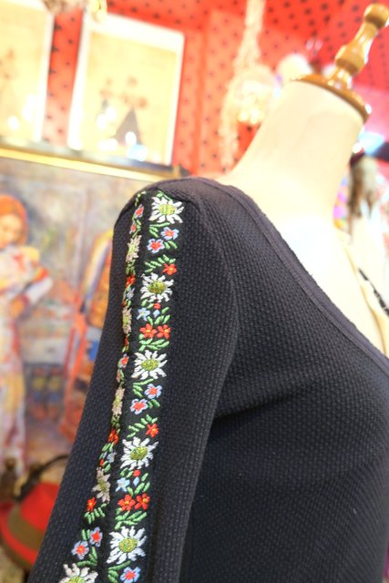 ヨーロッパ古着花柄チロリアンテープサーマルトップス