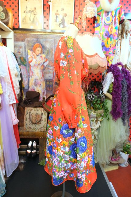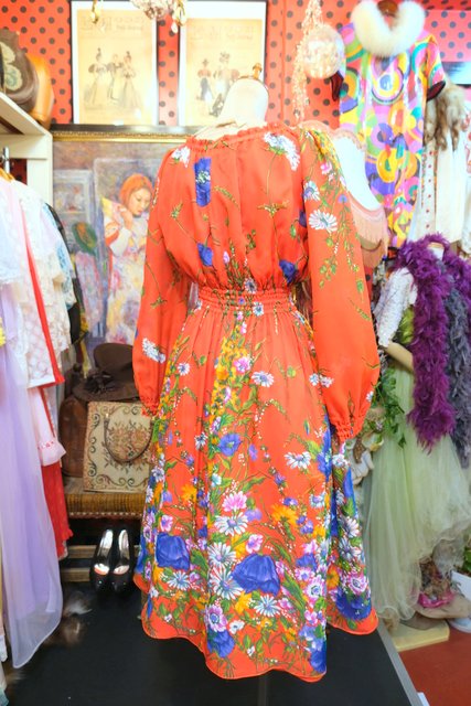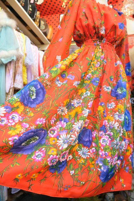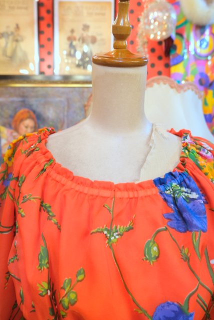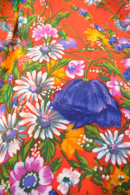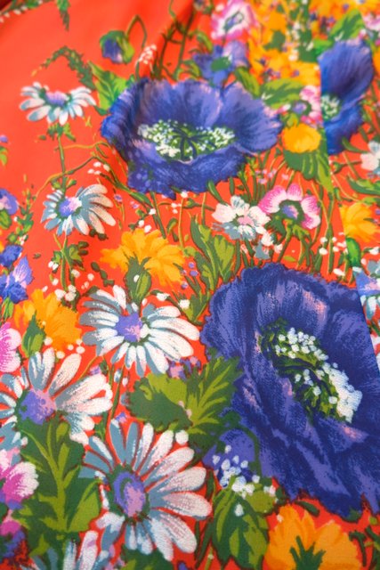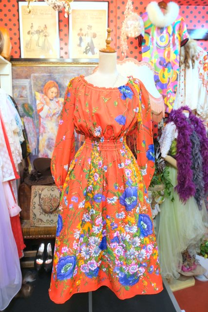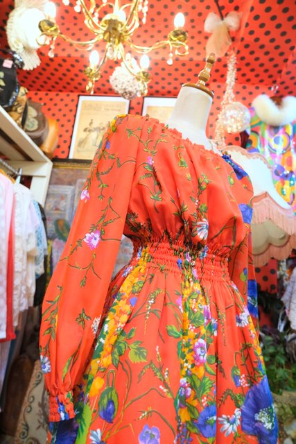 ヨーロッパ古着70sカラフル花柄ワンピース