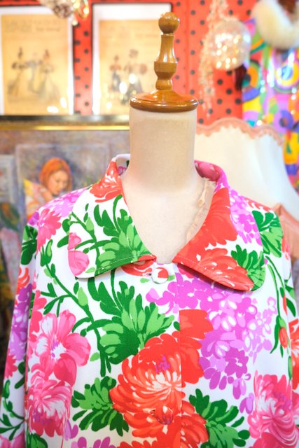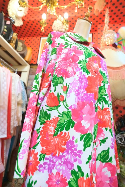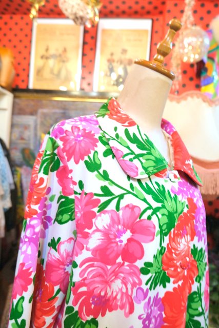 華やかな花柄デザインが目を惹く1960~70年代頃のフランス製ヴィンテージガウン羽織
