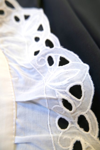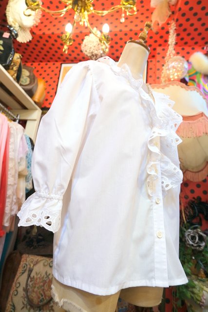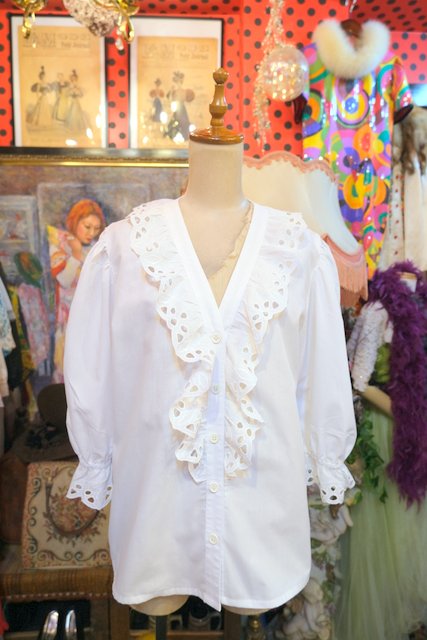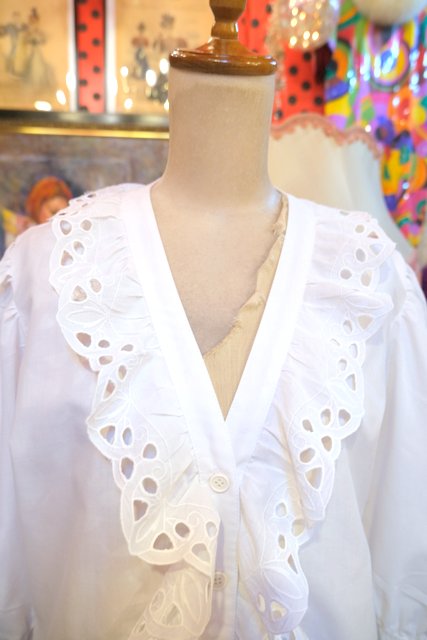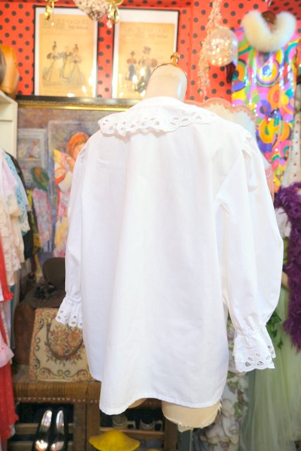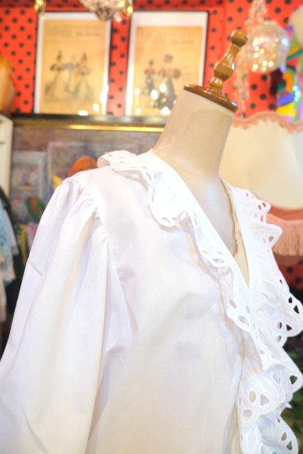 リーフ模様のようなカットワークフリルデザインが可愛らしい1980年代頃のヨーロピアンヴィンテージチロルブラウス