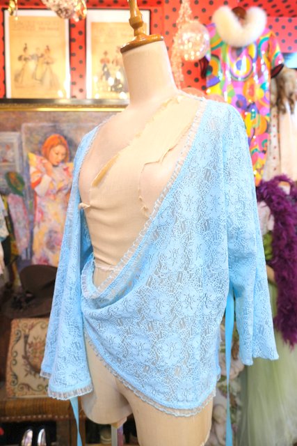 大人エレガンスなカシュクールデザインにチュールフリルやリボンが可愛らしいヨーロピアンレースカーディガン
