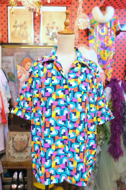 ヨーロッパ古着80sフランス製サイケデリック半袖シャツ