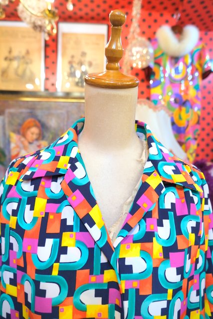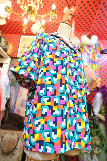 テロっとした落ち感にカラフルサイケデリックな総柄が魅力的な1970~80年代頃のフランス製ヴィンテージ半袖シャツ