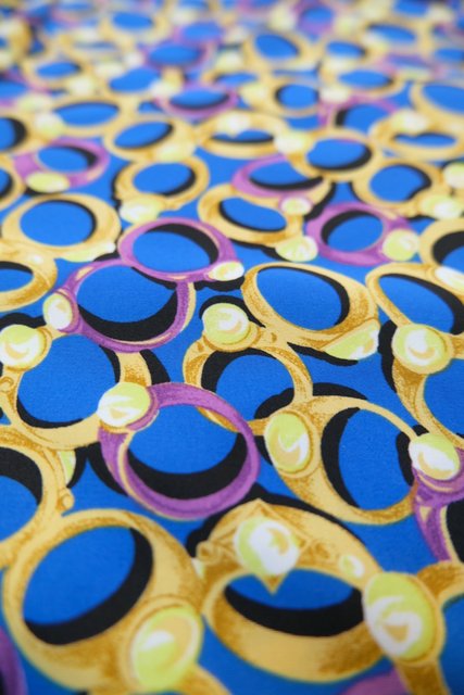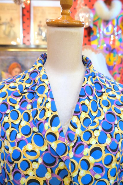 宝石付きのリング総柄プリントや丸いアンティークボタンが目を惹く1980年代頃のフランス老舗Gerard pasquierオーバーサイズシャツ