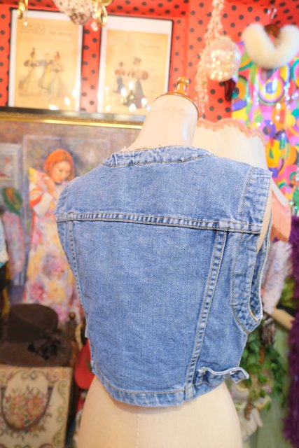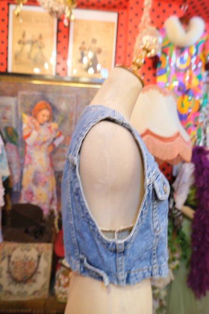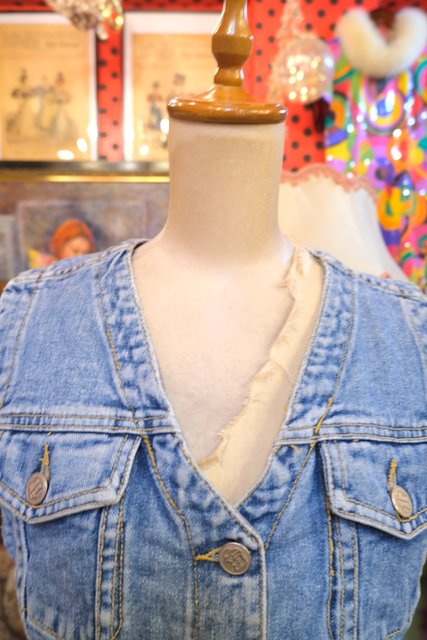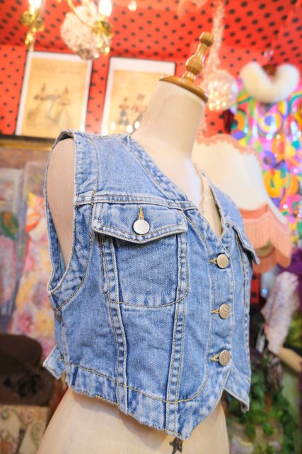Tシャツやブラウス、ワンピースにプラスするだけで洒落感&レトロ感がアップする1980年代頃のUSA製ショート丈デニムベスト