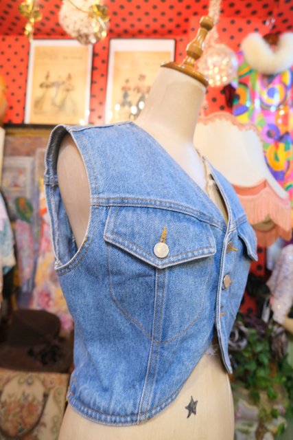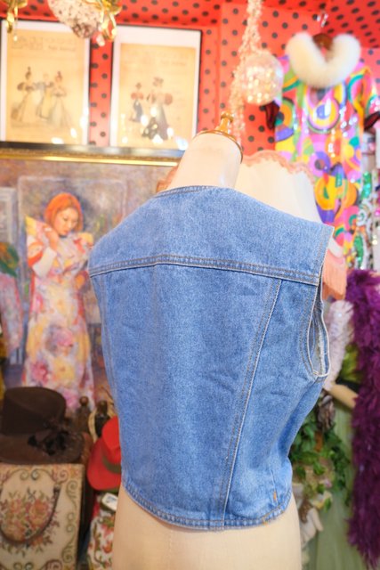 Tシャツやブラウス、ワンピースにプラスするだけで洒落感&レトロ感がアップする1980年代頃のUSA製ショート丈デニムベスト