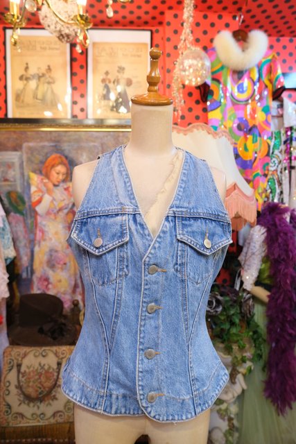 デニム×デニムスタイルやTシャツ、ブラウス、ワンピースにプラスするだけで洒落感&レトロ感がアップする1980年代頃のヨーロピアンデニムベスト