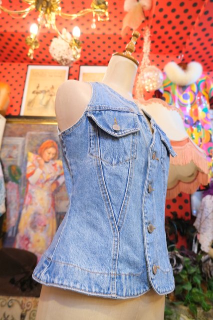 ヨーロッパ古着80sレトロヒッピーデニムベスト