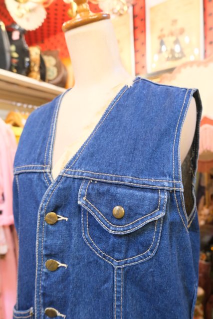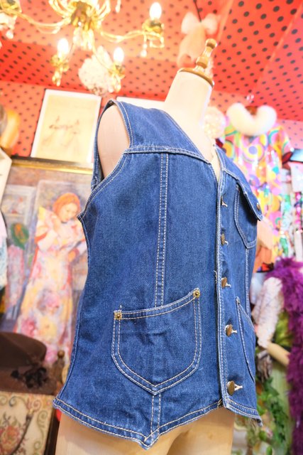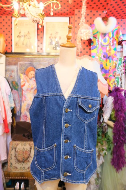 ヨーロッパ古着80sレトロヒッピーデニムベスト