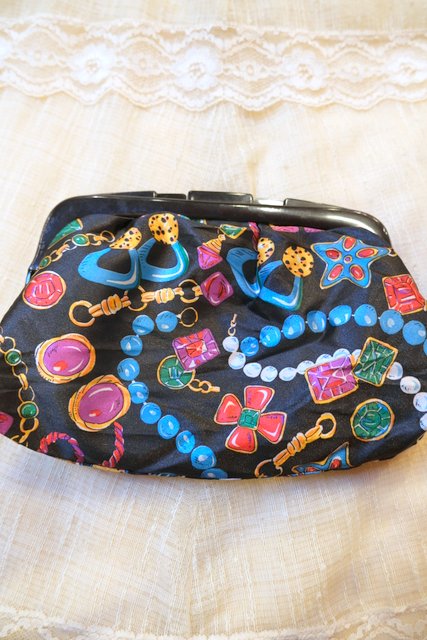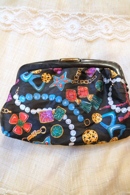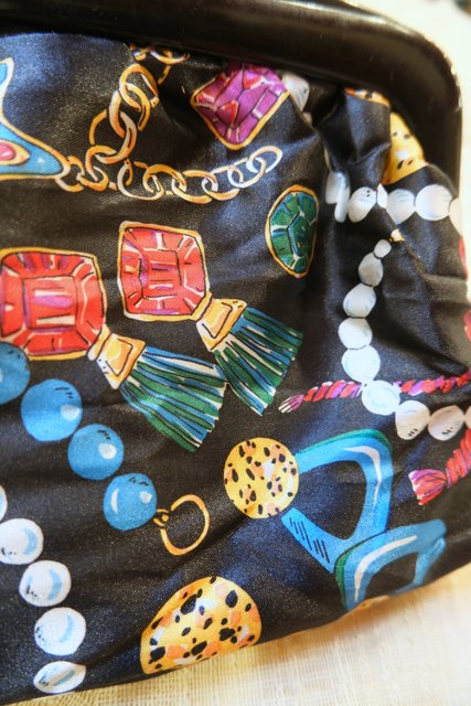 ゴージャスなネックレスやピアス、ブローチがプリントされたヨーロピアンがま口ポーチ 普段使いやお化粧ポーチにおススメ!