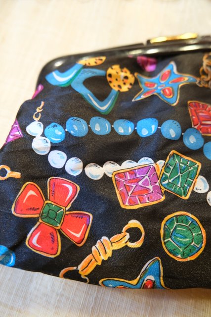 ヨーロッパ古着ゴージャス宝石ビジュープリントポーチ