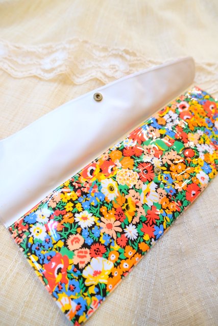 メイクブラシや筆箱におススメ!カラフルポップな花柄プリントが可愛らしい1970年代頃のヨーロピアンポーチ