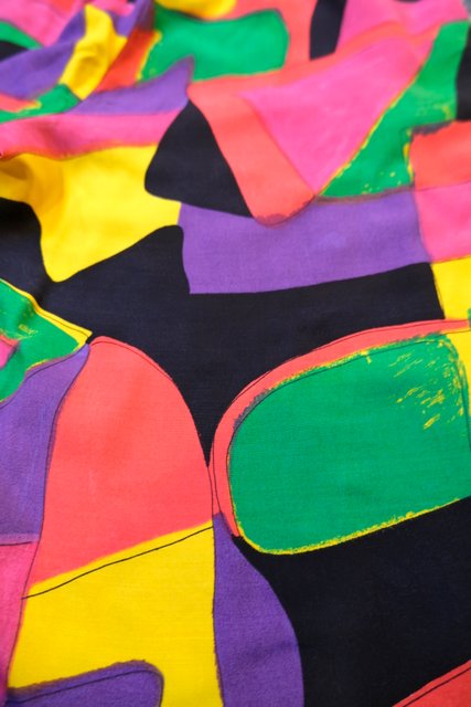 ペンキで描いたようなカラフルポップな総柄に7分丈デザインがお洒落な1980年代頃のヨーロピアンクロップドパンツ