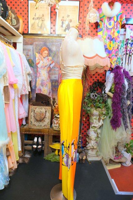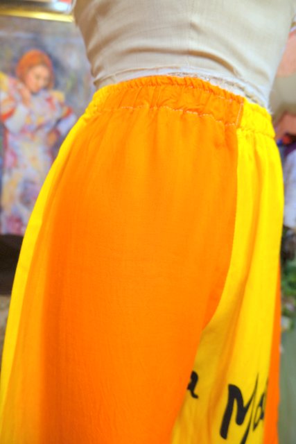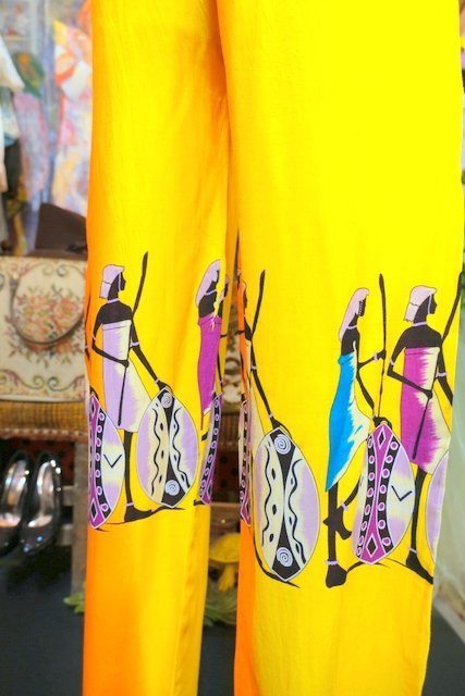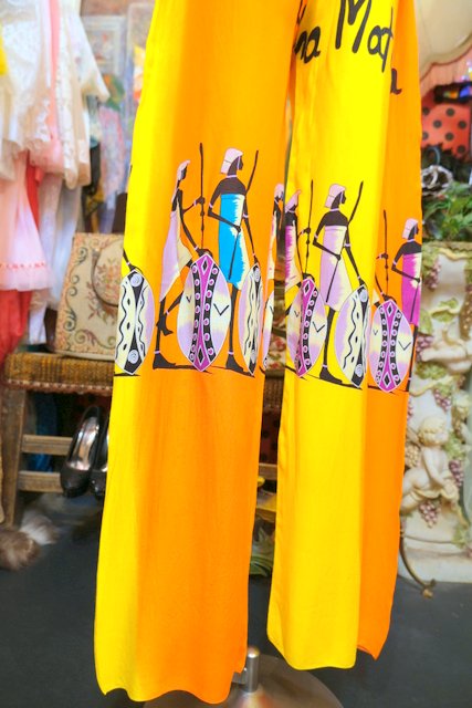 テロっとした落ち感にオレンジ×イエローのカラフルカラーやアフリカンプリントが目を惹くヨーロピアンエスニックパンツ