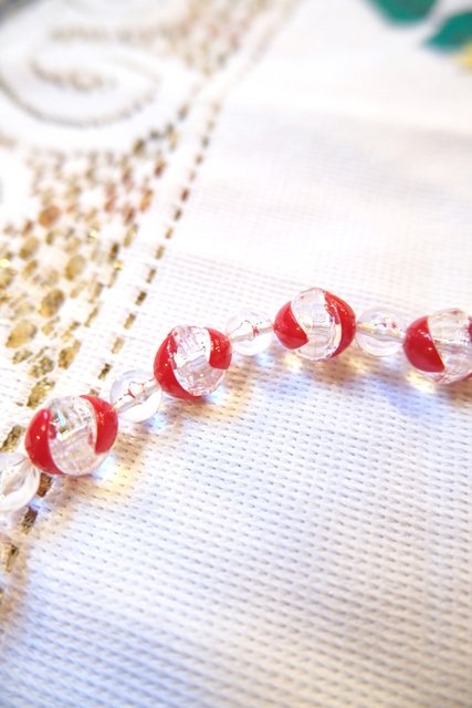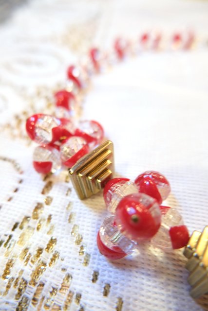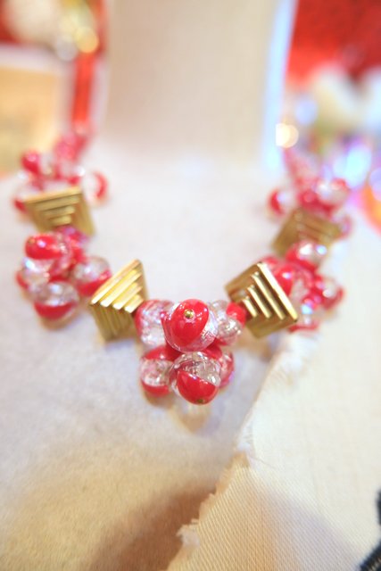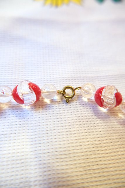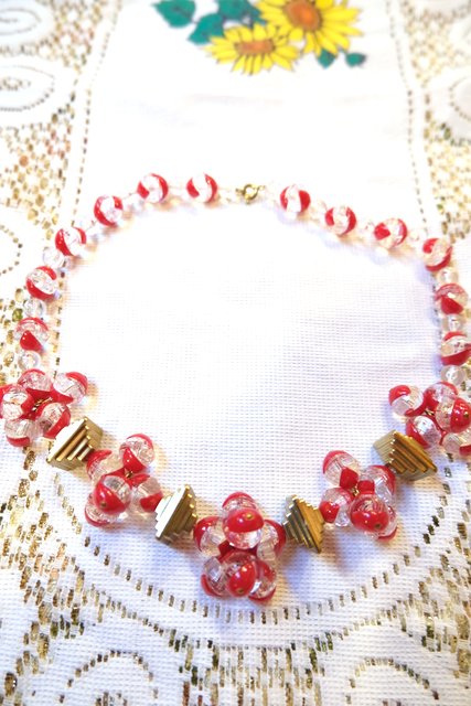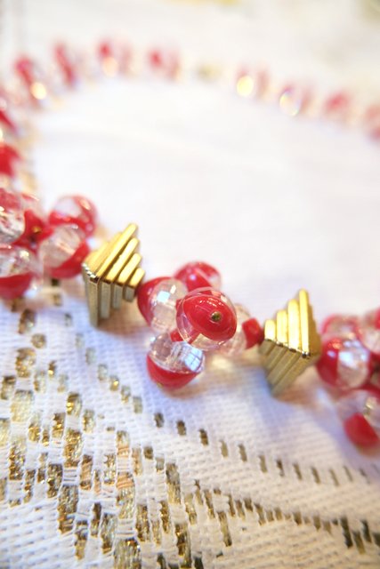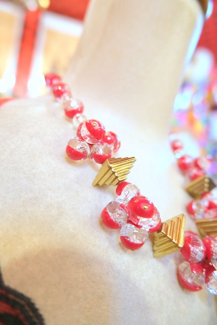 クリア×赤のボールデザインにピラミッドのようなパーツが可愛らしいベルギーで見つけた1970年代頃のヴィンテージネックレス