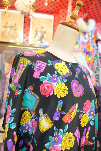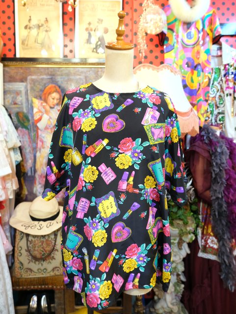 ヨーロッパ古着80sカラフル香水柄カットソー