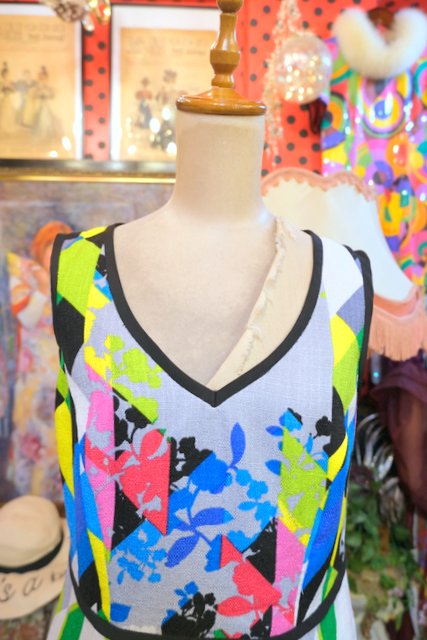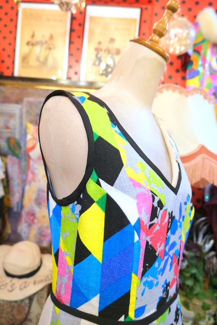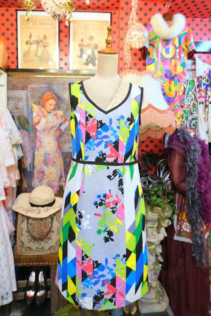 カラフルでエレガントな花柄やジオメトリック柄が魅力的なヨーロピアンノースリーブワンピース ★SALE★