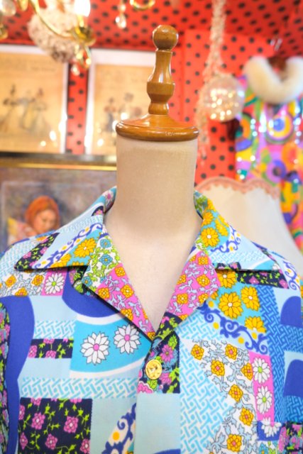ヨーロッパ古着70sレトロポップヒッピーシャツ
