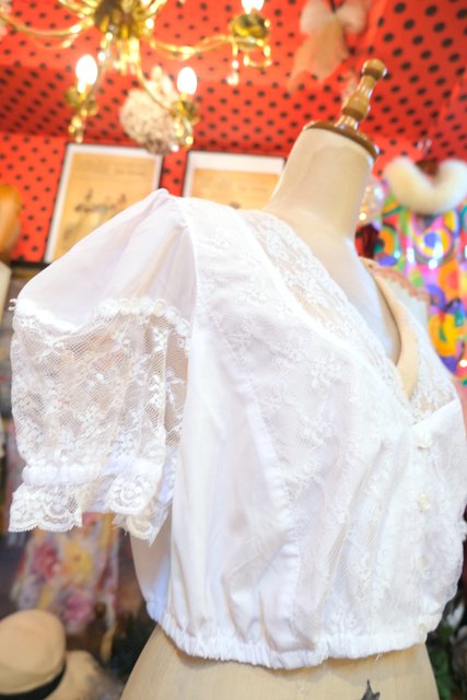 ヨーロッパ古着エレガントシフォンレースチロルブラウス