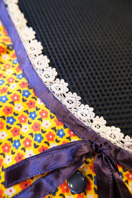 レトロガーリーなお花のカットワークレースに胸元のリボンデザイ…