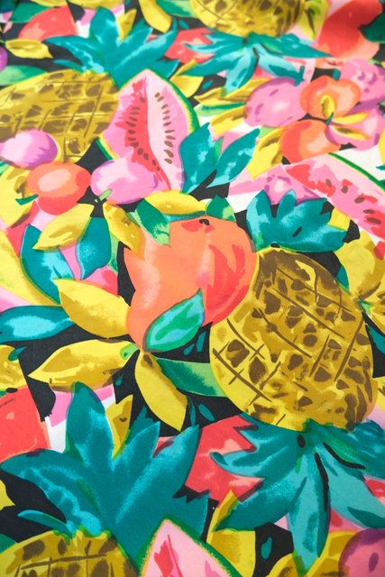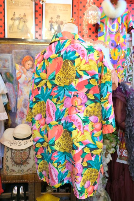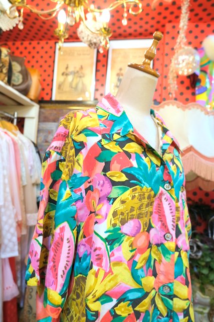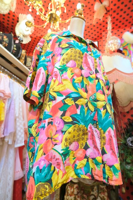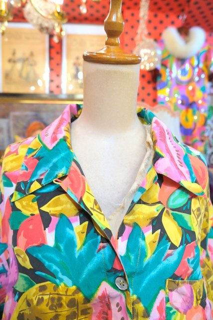 ヨーロッパ古着80sトロピカルフルーツ柄半袖シャツ