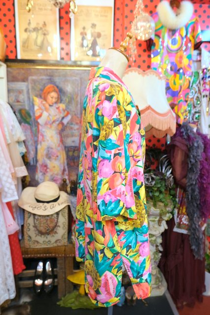 滑らかな肌触りの生地にカラフルポップなフルーツ柄が可愛らしい1980年代頃のヨーロピアンシルクオーバーサイズシャツ
