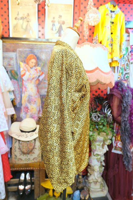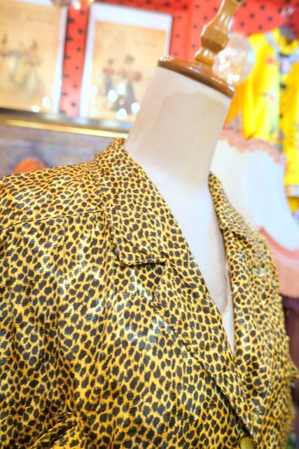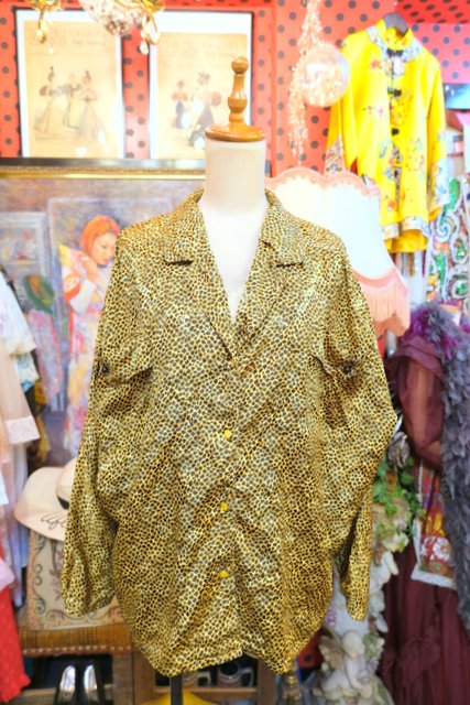 光沢感がある生地に細かいレオパード柄やドルマンスリーブデザインがカッコいい1980年代頃のヨーロピアンオーバーサイズシャツ