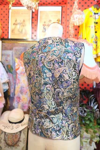 エレガントゴージャスなサイケデリック模様のメタリックデザインが魅力的な1980年代頃のヨーロピアンヴィンテージパーティーベスト