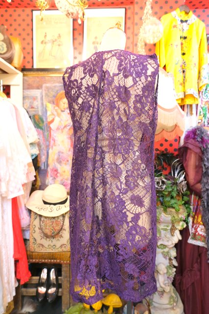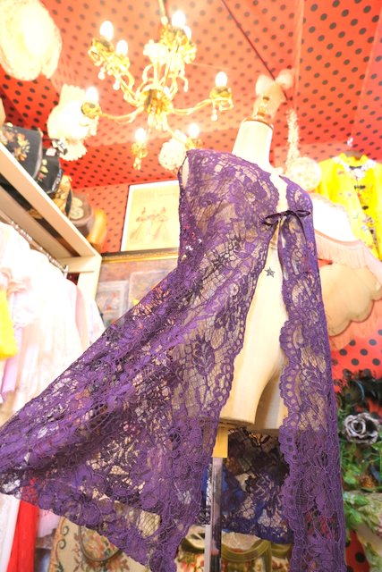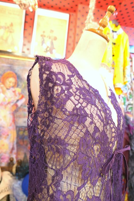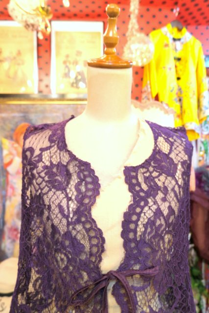 繊細で華やかな紫色の花柄レースデザインが魅力的なヨーロピアンヒッピーロングベスト