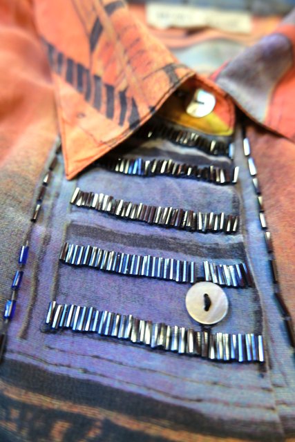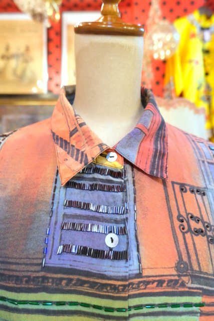 ヨーロッパ古着80sアート風景画ビーズデザインシャツ