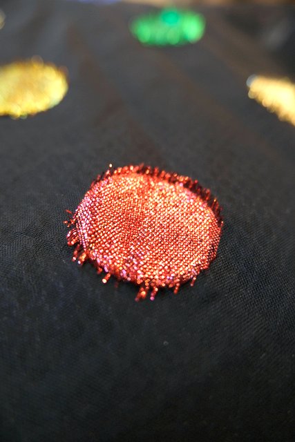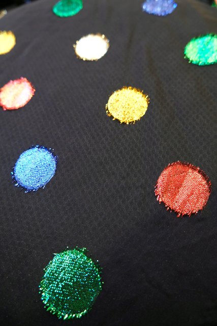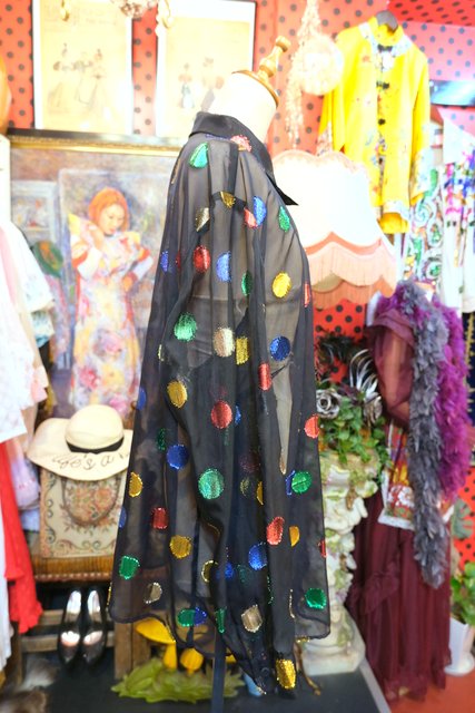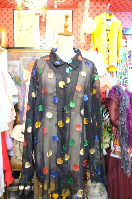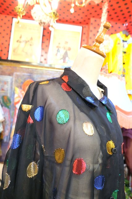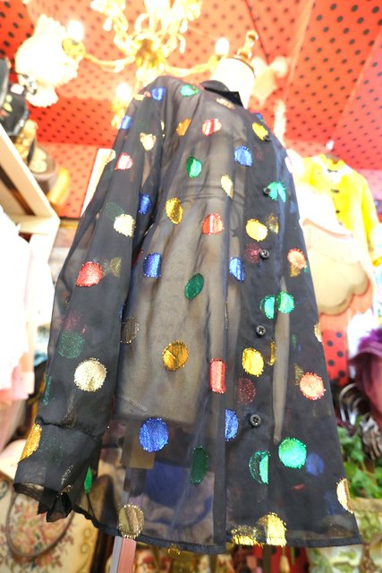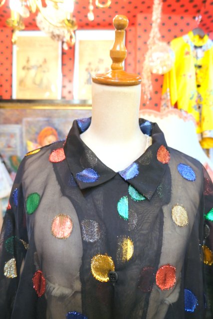 透け感があるシフォン生地にカラフルなメタリックラメ水玉デザインが個性的な1980年代頃のヨーロピアンヴィンテージオーバーサイズシャツ
