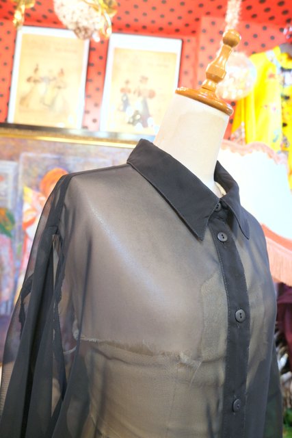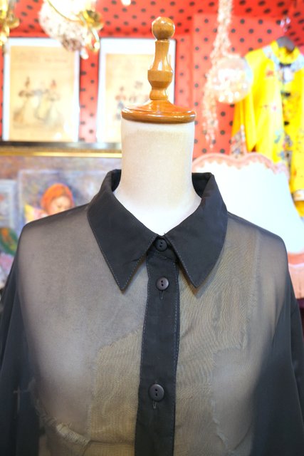 レイヤードスタイルにおススメな透け感が魅力の1980年代ヨーロピアンシフォンオーバーサイズシャツ