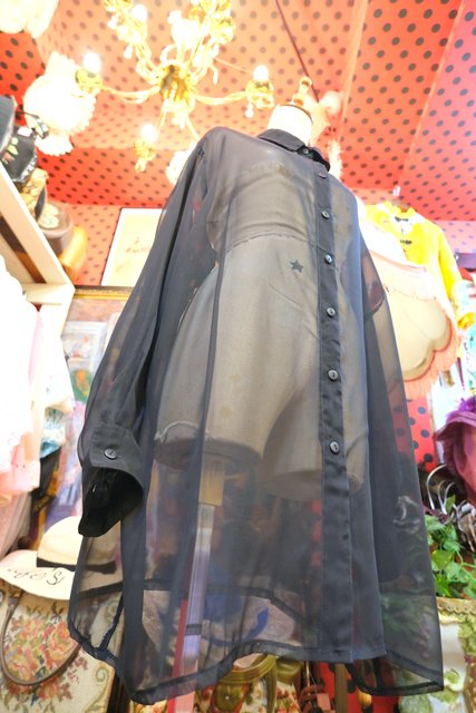 ヨーロッパ古着ブラックシフォンオーバーサイズシャツ