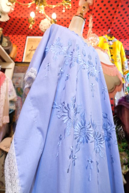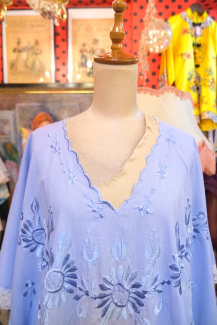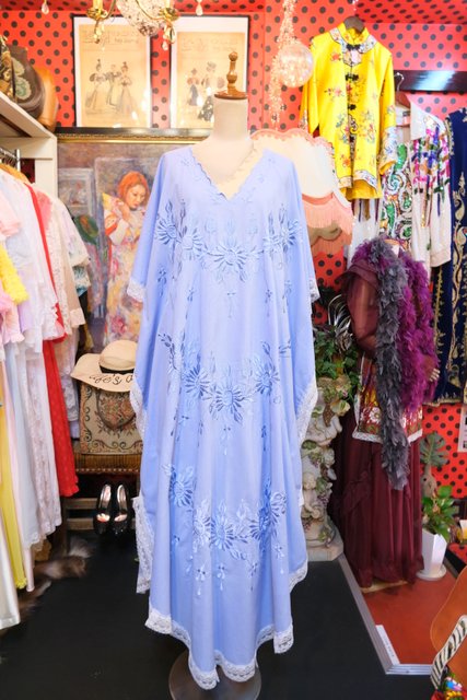 レトロヒッピーな花柄刺繍に花柄レースやポンチョデザインが可愛らしいヴィンテージメキシカンワンピース