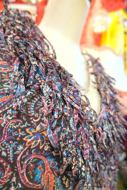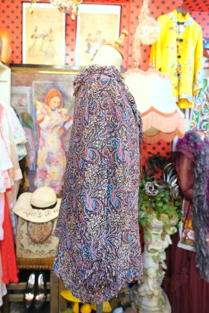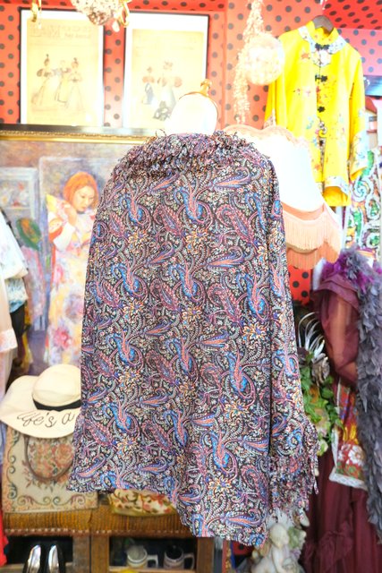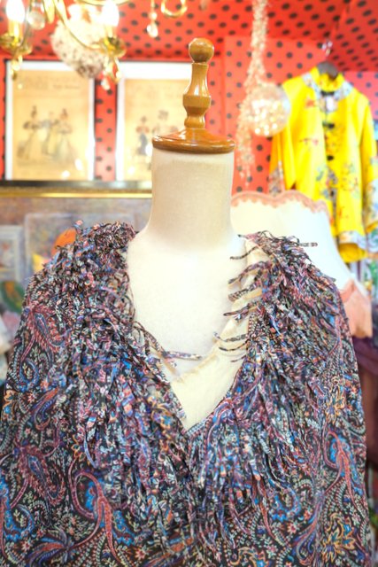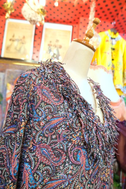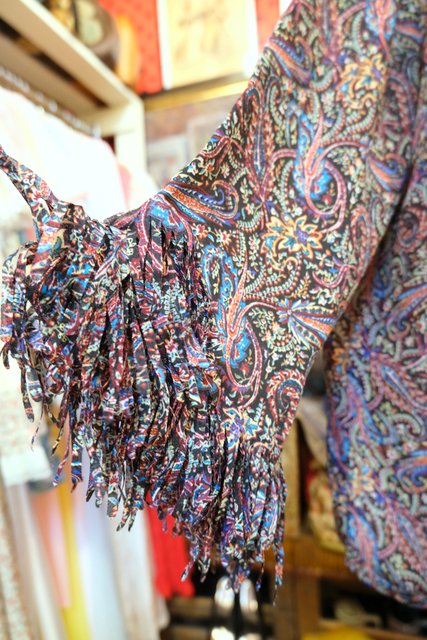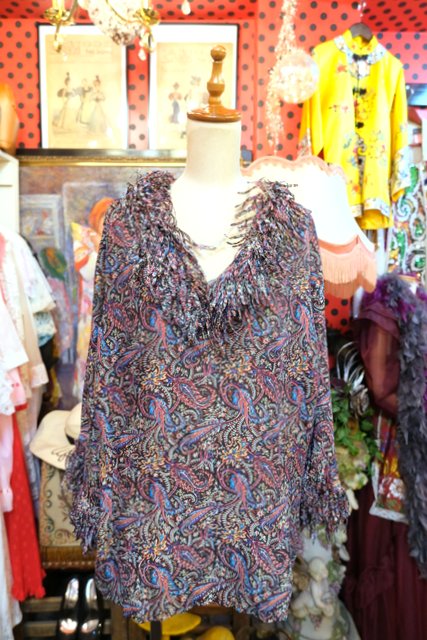 レトロなペイズリー総柄に首周り&袖先のモジャモジャしたフリンジデザインが可愛らしいヨーロピアンヒッピーカットソー