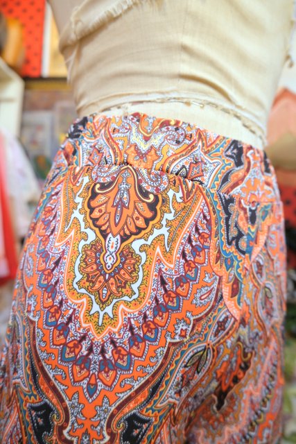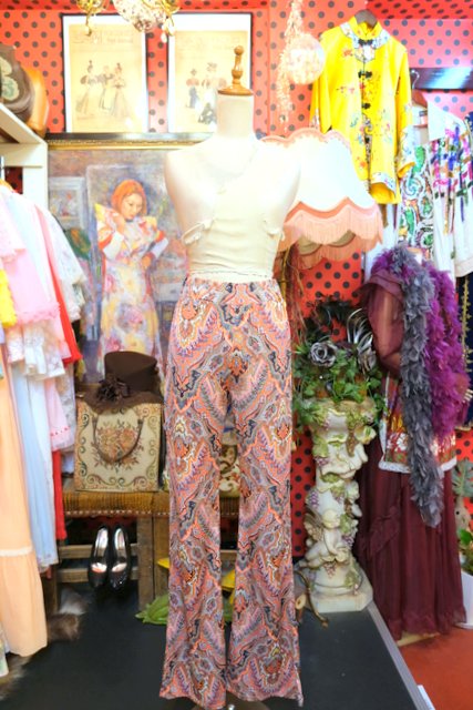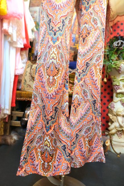 テロっとした質感にオレンジベースのサイケデリックペイズリー柄が魅力的なイタリア製ヒッピーパンツ