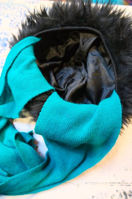 ヨーロッパ古着ショール付きフェイクファーデザイン帽子