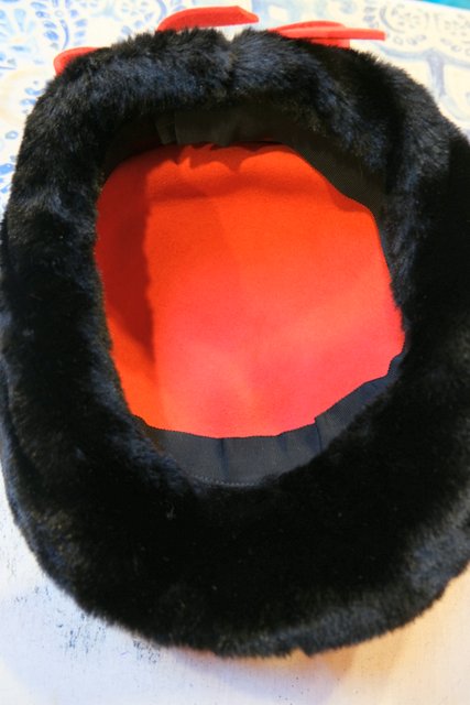 ハンチング風なシルエットに黒フェイクファーやリボンデザインがお洒落な1980年代頃のヨーロピアンヴィンテージ帽子