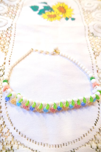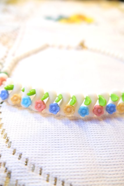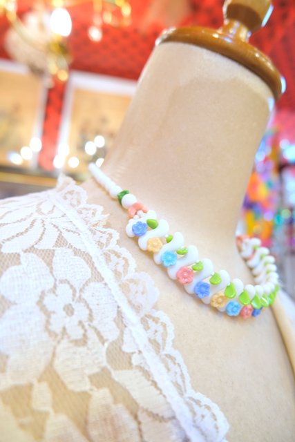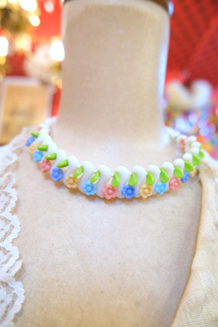 カラフルポップなお花やリーフデザインが可愛らしい1960~70年代頃のヨーロピアンヴィンテージネックレス