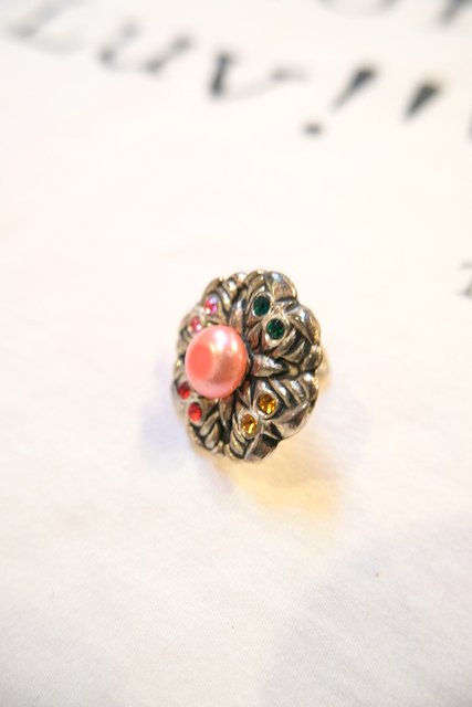 シルバー色のお花デザインにカラフルなラインストーン付きが可愛らしいスペインで見つけた1970~80年代頃のヨーロピアンヴィンテージイヤリング