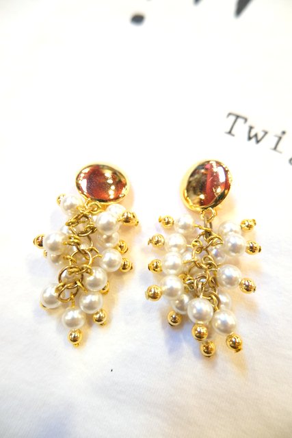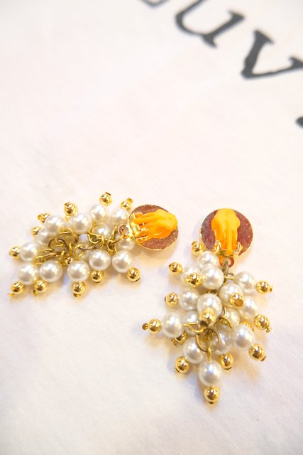 ゴールド×パールの葡萄のようなデザインが可愛らしいスペインで見つけたヨーロピアンパーティーイヤリング