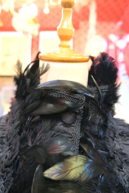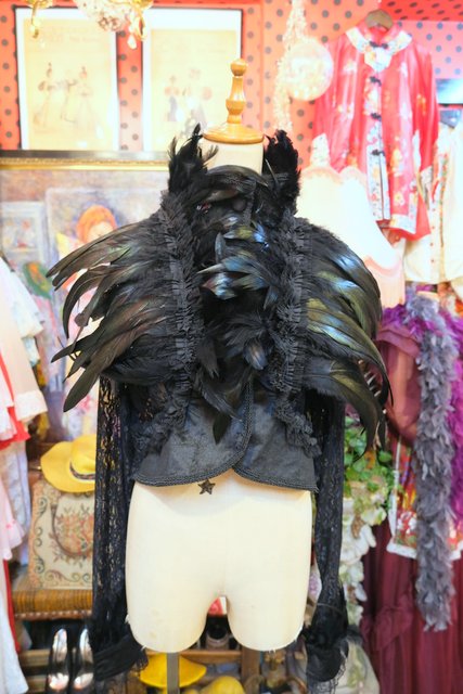 エレガントな花柄総レースに迫力満点のボリュームフェザーデザインがカッコいいヨーロピアンパーティージャケット エレガント、マニッシュ、ゴシック、ロックファッションなど色々なシーンで使えるお洒落アイテム!