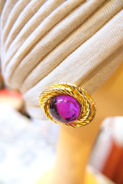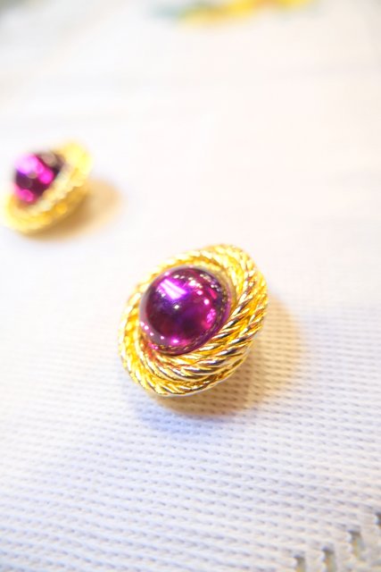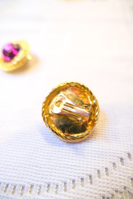 エレガントな輝きのゴールドベースにピンククリアパーツがお洒落なフランスのアンティークショップで見つけた1980年代頃のヨーロピアンヴィンテージイヤリング