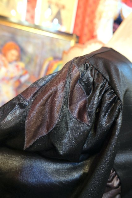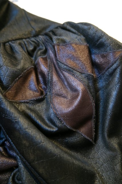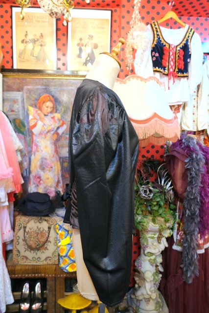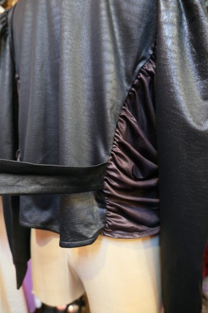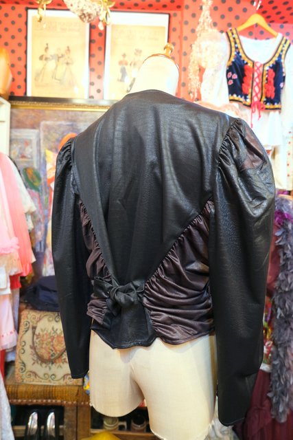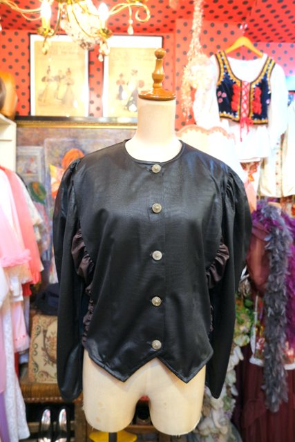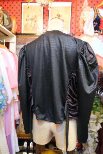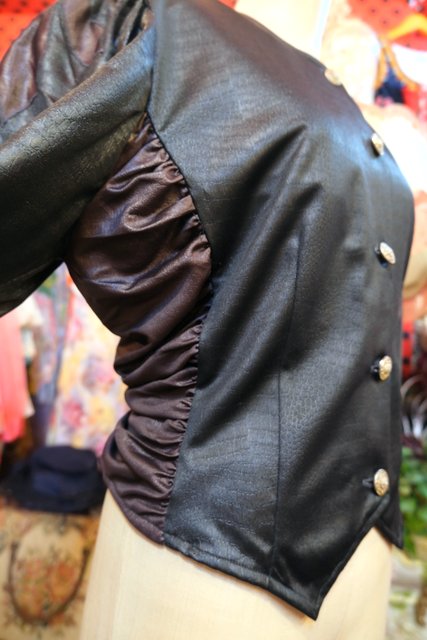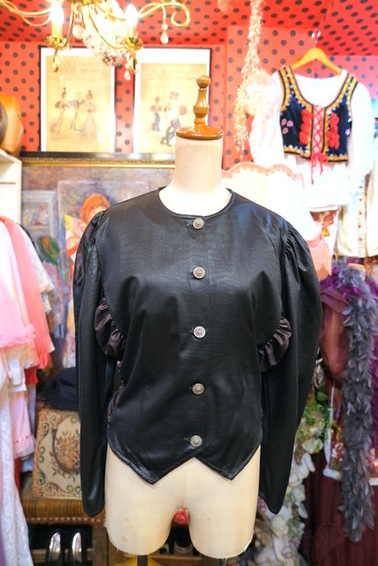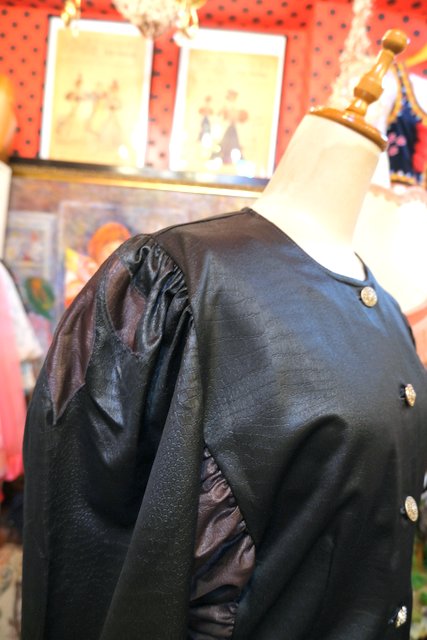 クロコダイルのような生地に両サイドのドレープデザインやパフスリーブがカッコ可愛い1980年代頃のヨーロピアンヴィンテージシャツジャケット