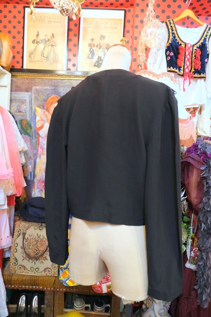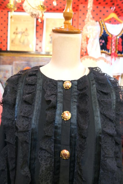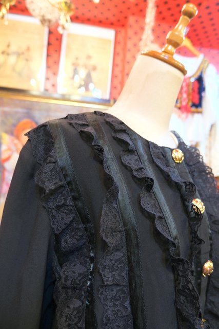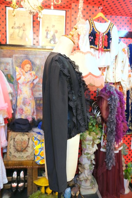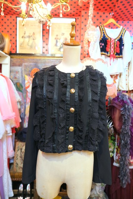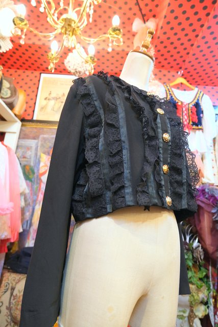 エレガントガーリーな黒レースフリルデザインにショート丈が可愛らしい1980年代頃のイタリア製ヴィンテージシャツジャケット