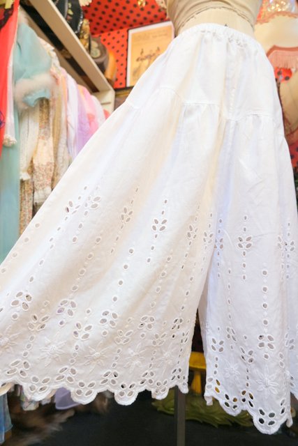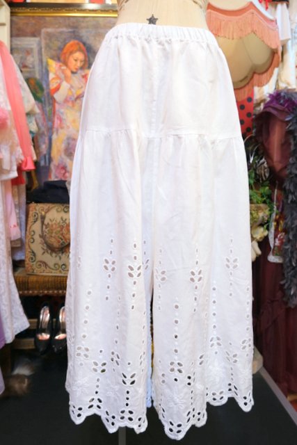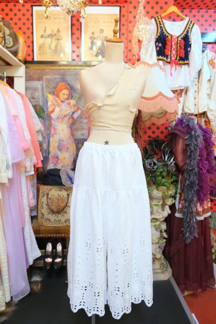 レトロガーリーなお花刺繍やカットワークレースデザインが魅力的なヨーロピアンヴィンテージチロルパンツ レイヤードスタイルにおススメ!
