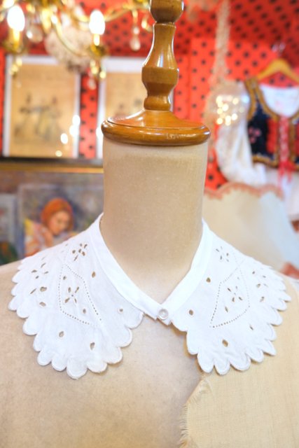 シンプルなトップスやワンピースに合わせるだけで甘すぎず上品な印象のフランスで見つけた1930~40年代頃のアンティークリネンつけ襟