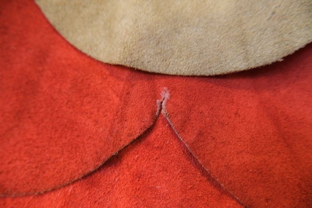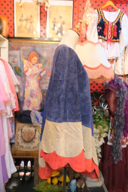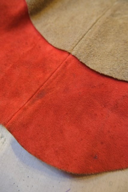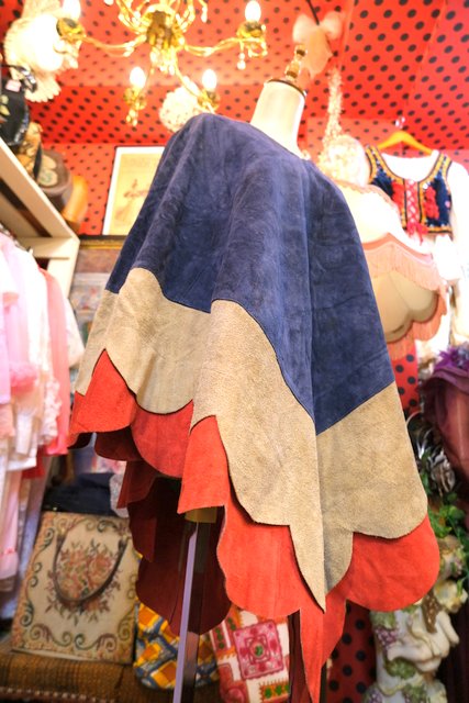 ネイビー×ベージュ×赤のスエードレザーにスカラップデザインが可愛らしい1970年代頃のヨーロピアンヴィンテージポンチョ