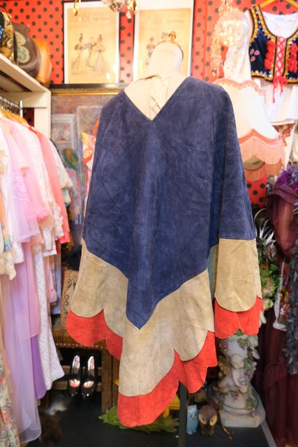 ヨーロッパ古着70sヴィンテージスエードレザーポンチョ